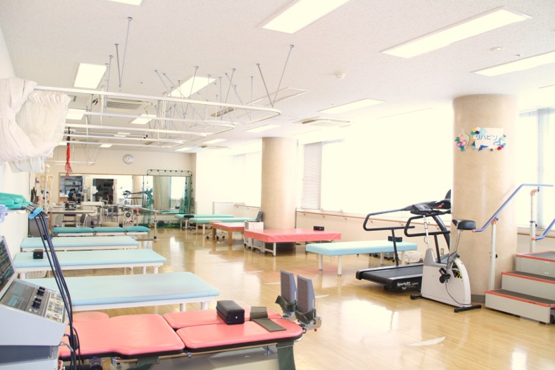 当院のリハビリテーション施設は運動器疾患Ⅰ、脳血管疾患Ⅲの施設基準を取得し、外来、入院の患者さまが対象になり、運動器疾患を中心にリハビリテーションを提供しています。病床は47床あり、手術翌日から開始し、早期からリハビリテーションを促すことで早期の自宅復帰・社会復帰を目指しています。外来は完全予約制で、身体状況やご本人・ご家族の都合に合わせながらリハビリの頻度を決めて通院してもらっています。
